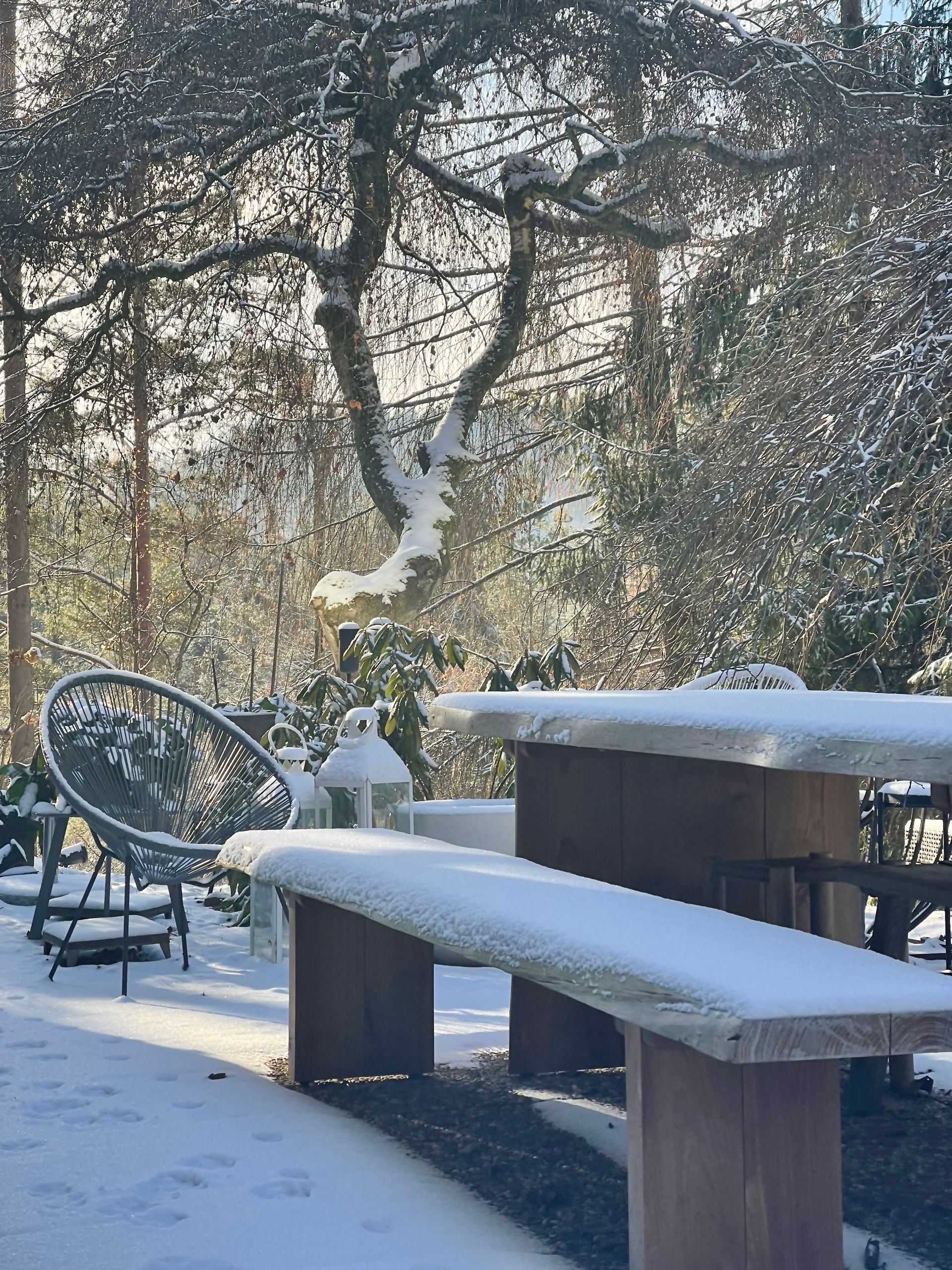 Terrassenimpressionen im Februar: vollständig ankommen und die Blicke schweifen lassen. Die Lichtstimmung in sich aufsaugen.